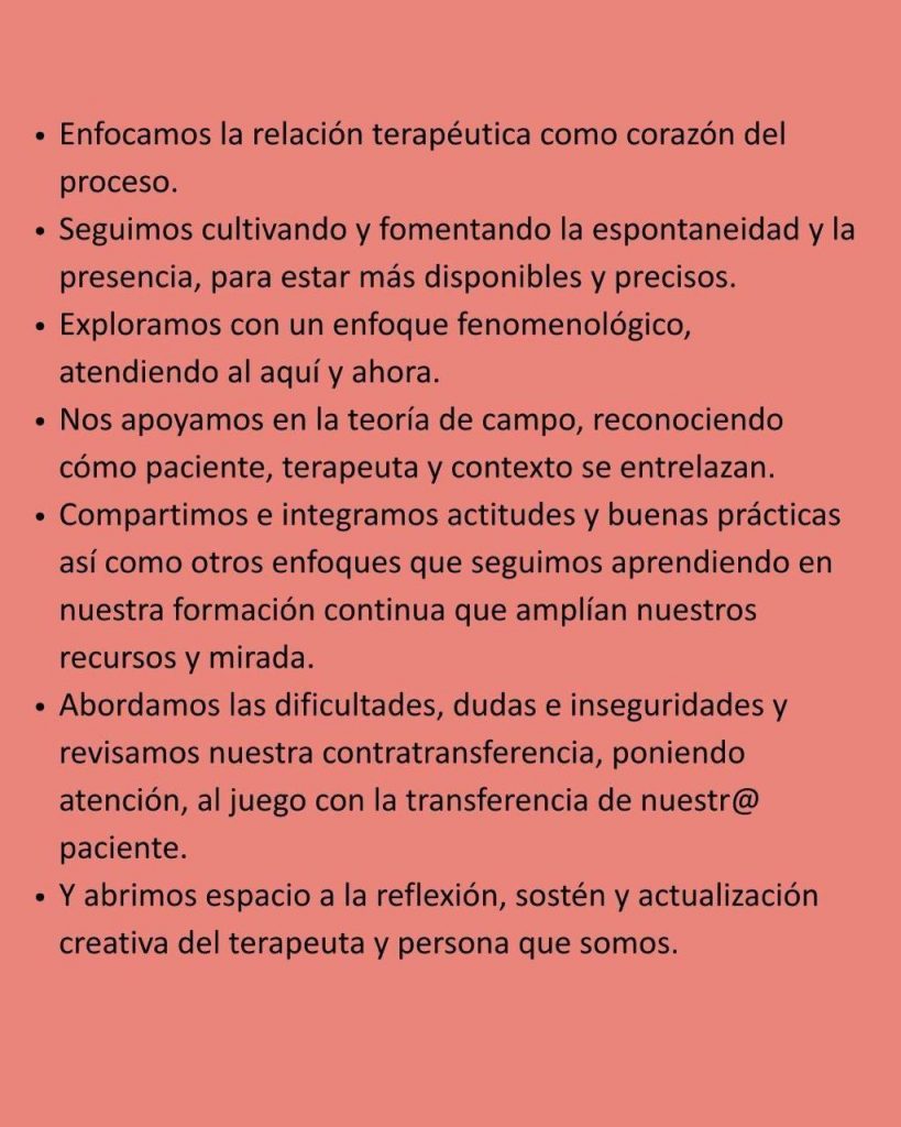 Miembro del equipo docente y de la escuela Gestalt Ananda Formación, durante 11 años, dirigida por Ada López.